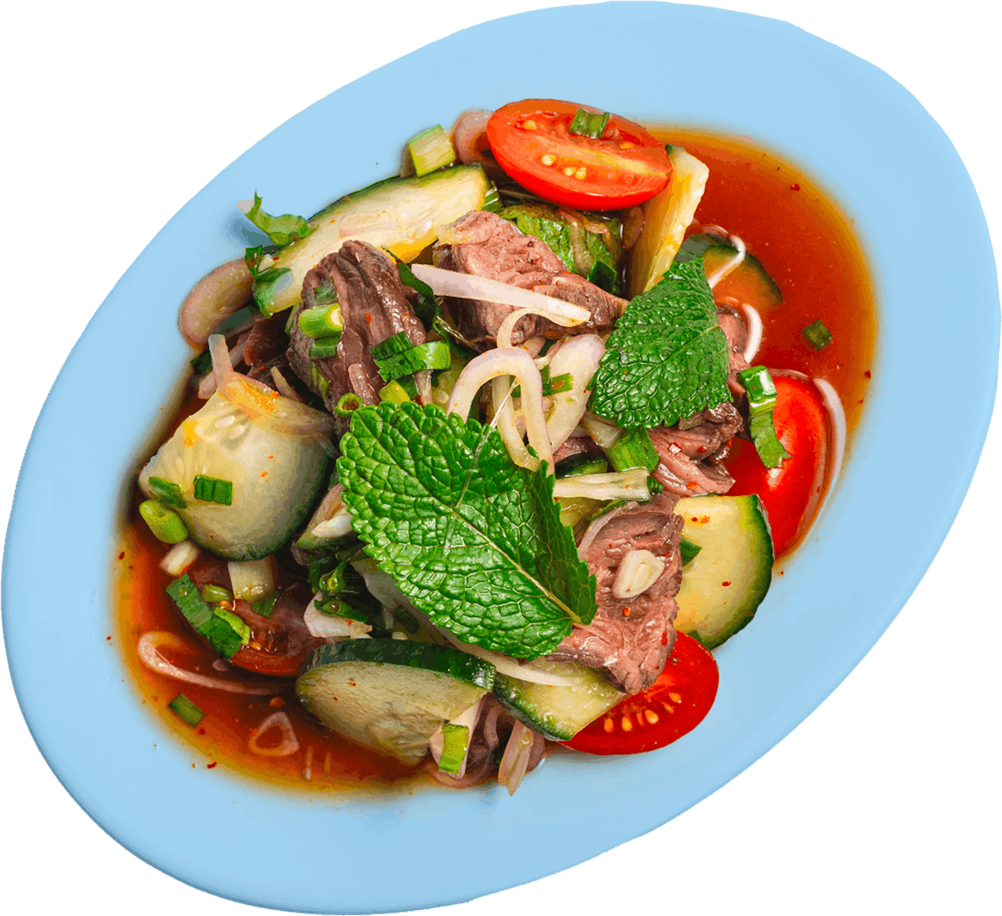 Salade de boeuf mariné et grillé. Sauce fraîche, douce et acidulée.