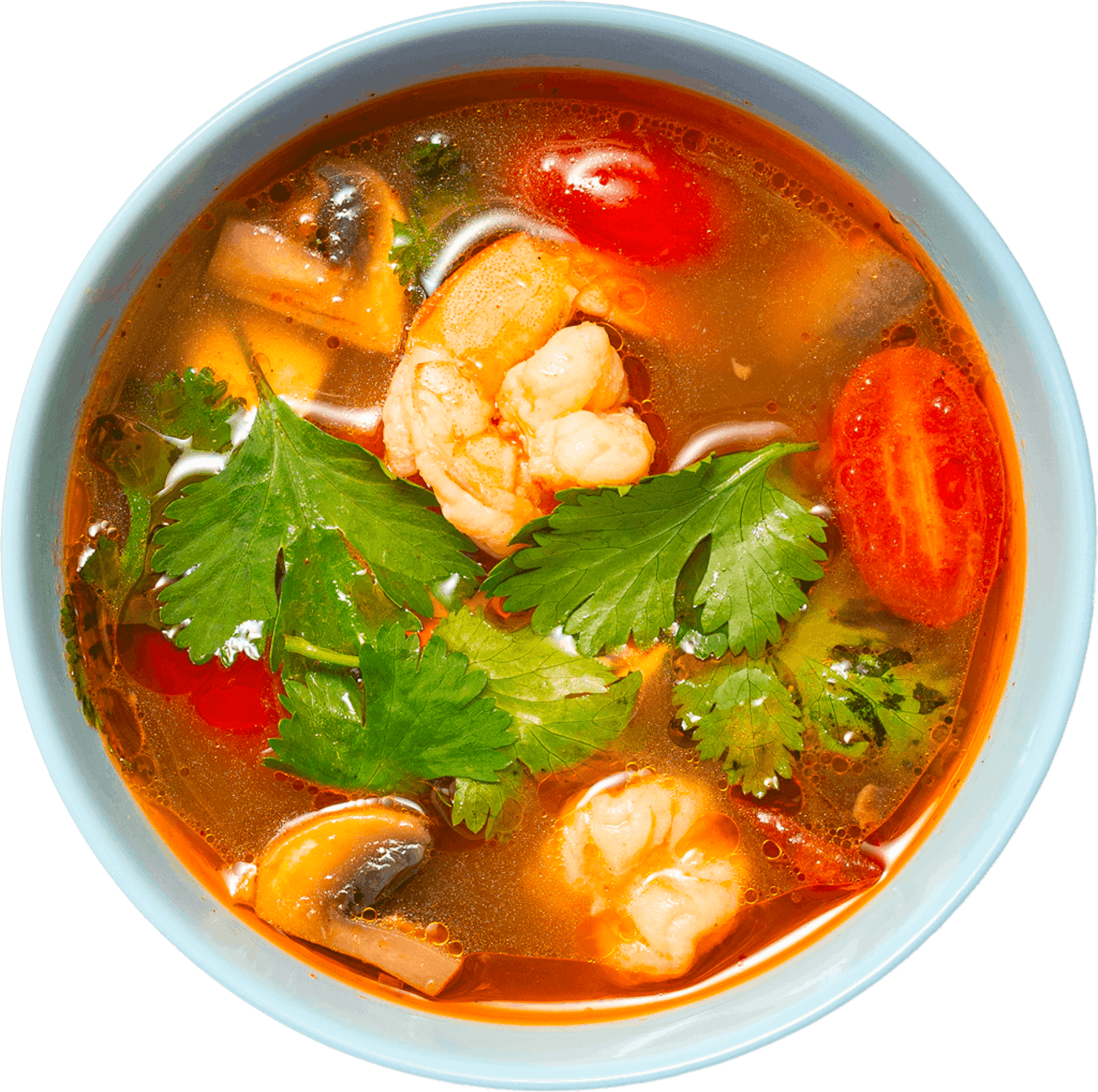 Petite soupe emblématique aux crevettes, épicée et légèrement acidulée.