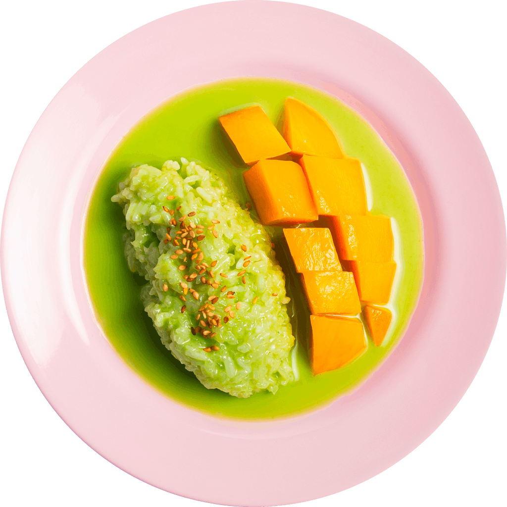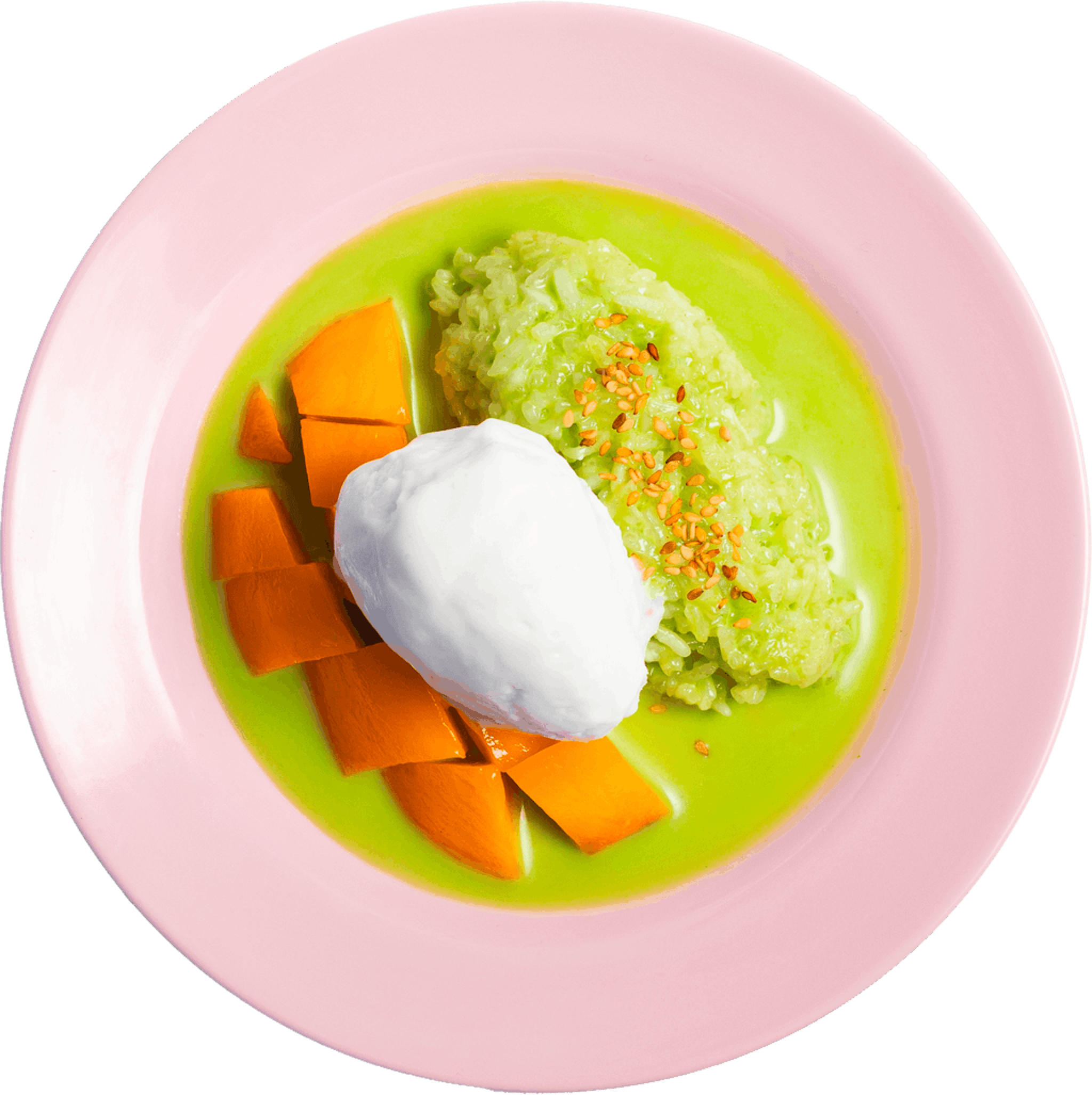 Riz gluant au pandan, lait de coco et mangue fraîche.