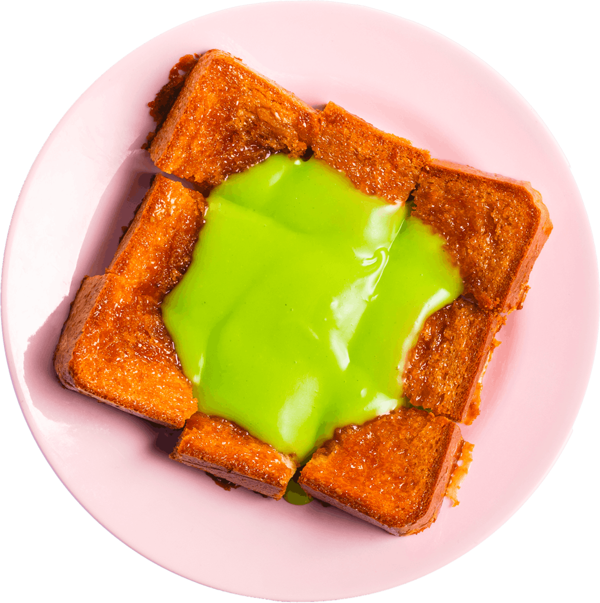 Pain moelleux légèrement caramélisé, crème douce au pandan.