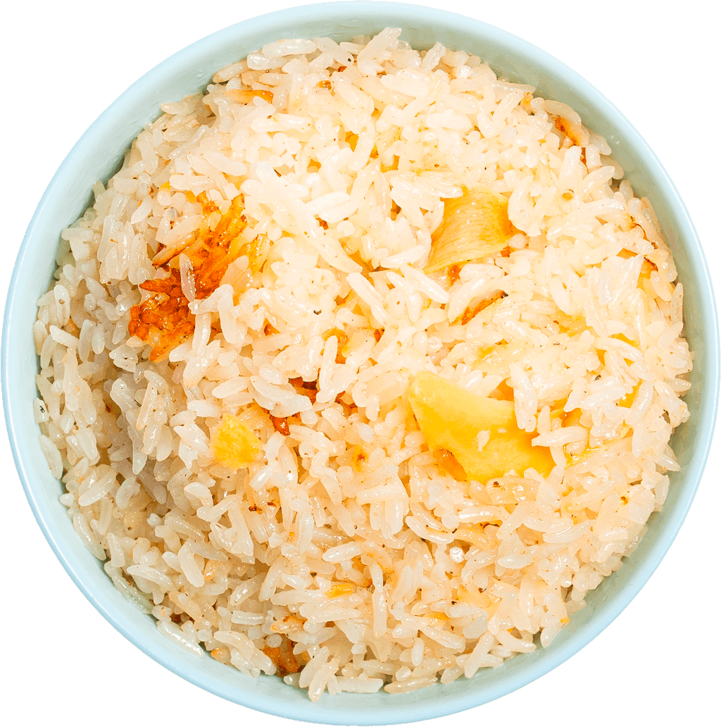 Riz parfumé au bouillon de poulet, ail et gingembre.