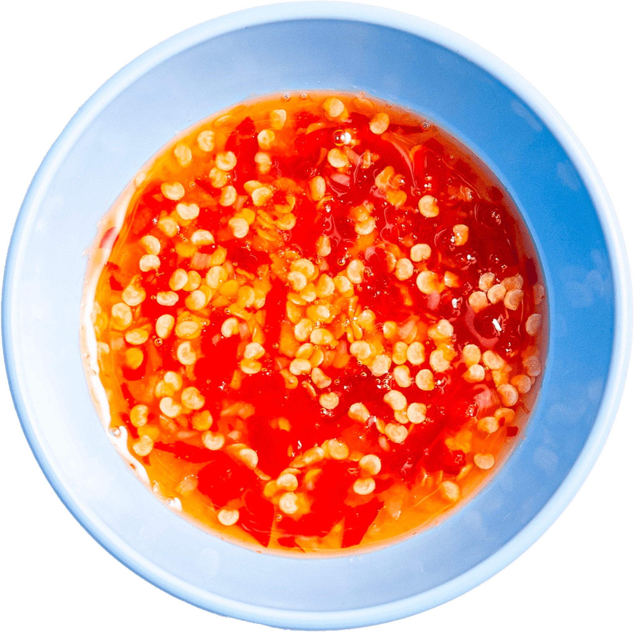 น้ำจิ้มแจ่วSauce iconique punchy et fraîche, au tamarin et à la citronnelle.