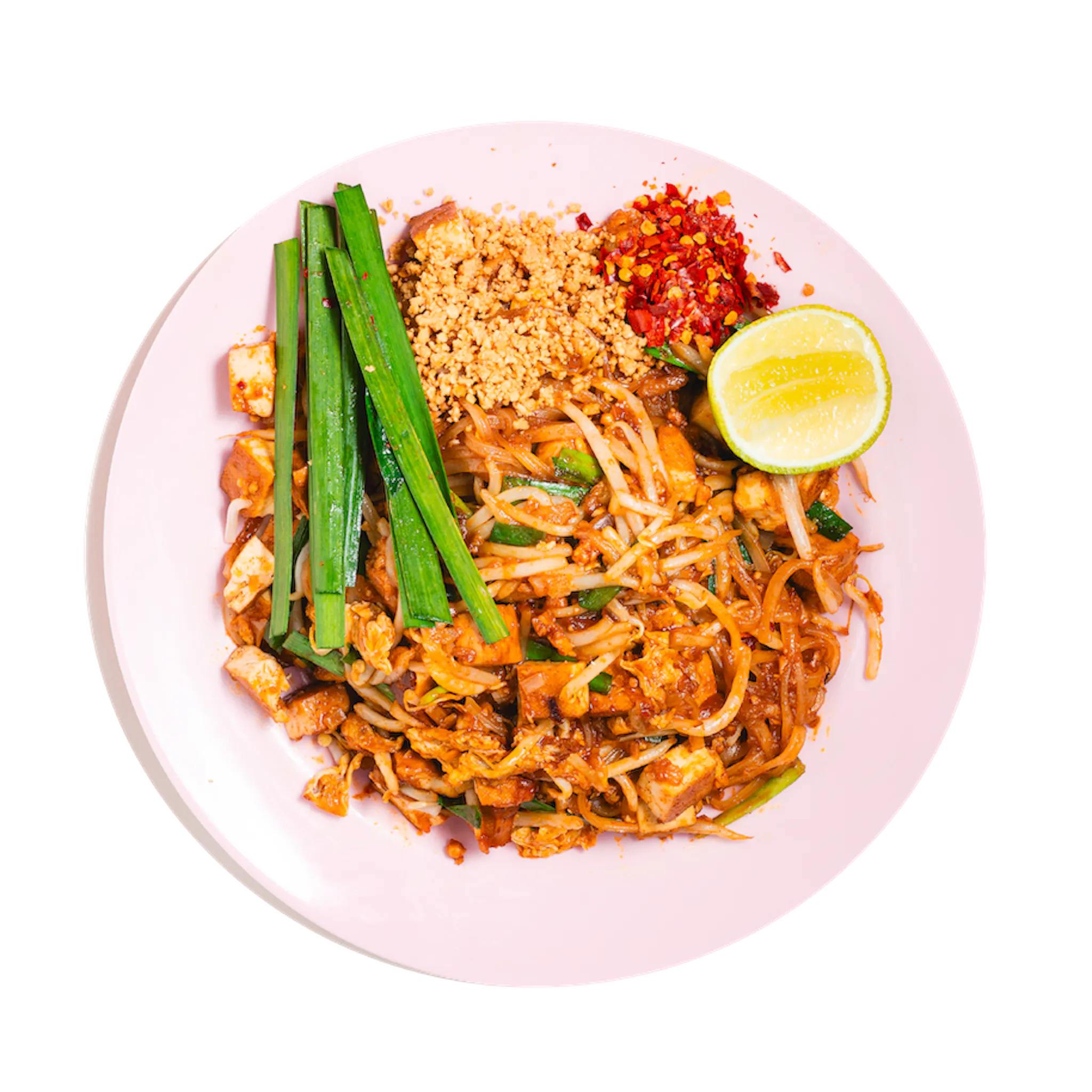 Nouilles de riz fines sautées au wok, tofu, oeuf, et sauce tamarin secrète.