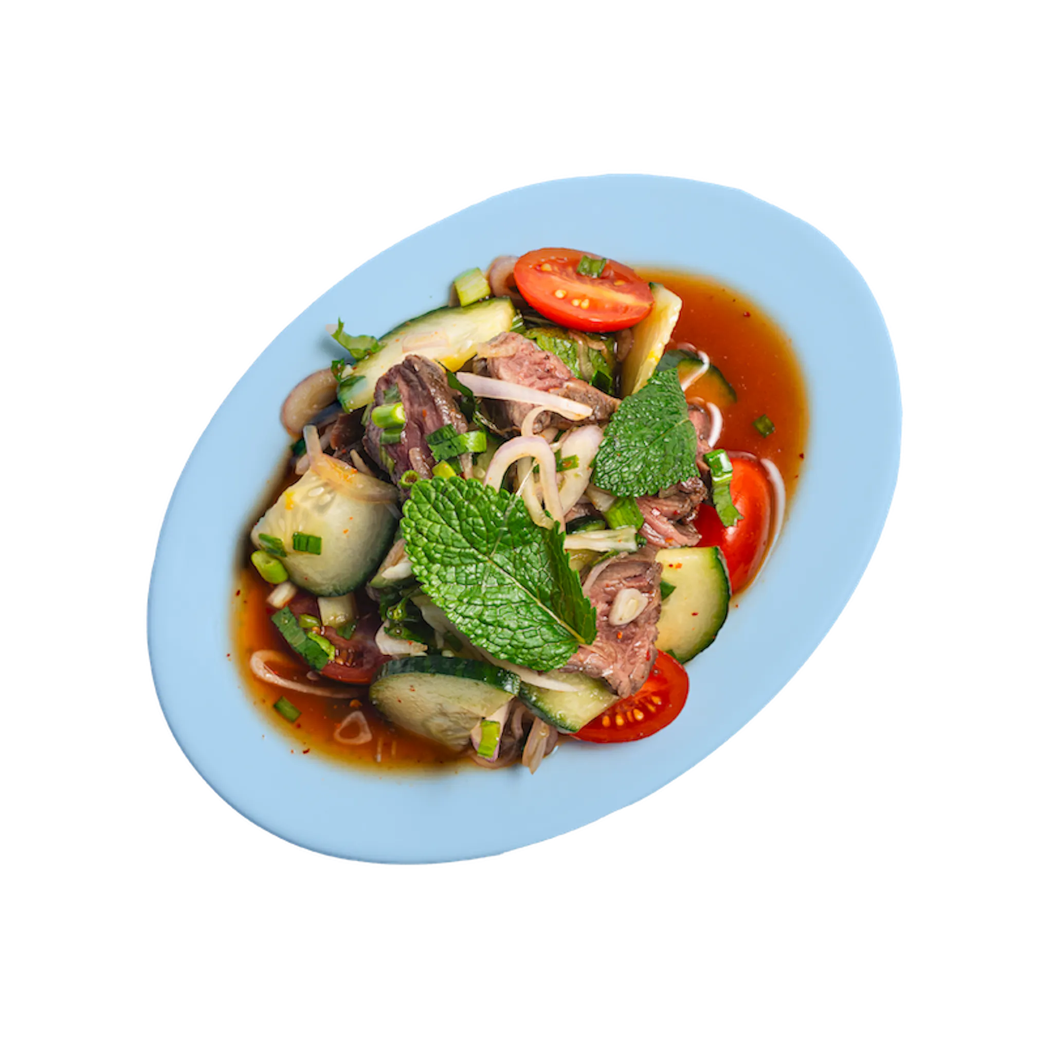 Salade de boeuf mariné et grillé. Sauce fraîche, douce et acidulée.