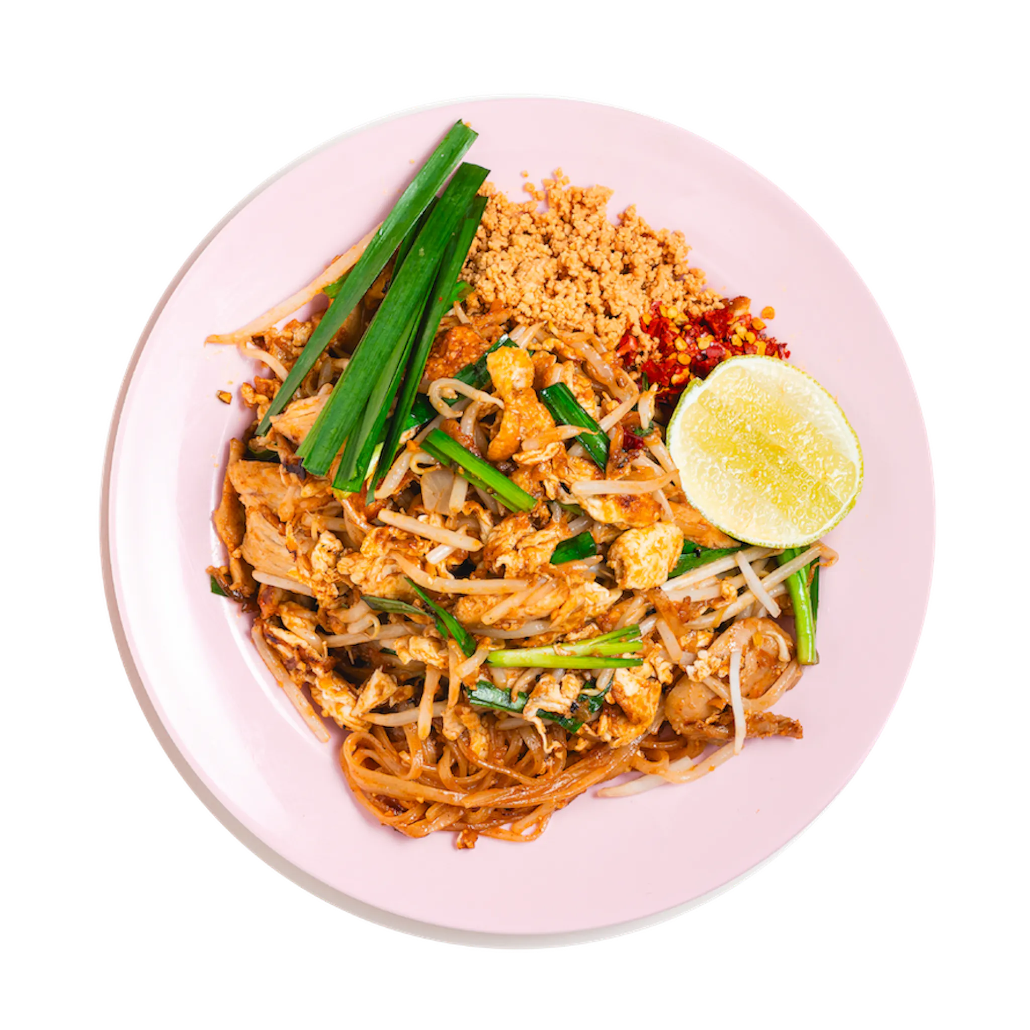 Nouilles de riz fines sautées au wok, poulet, tofu, oeuf, et sauce tamarin secrète.
