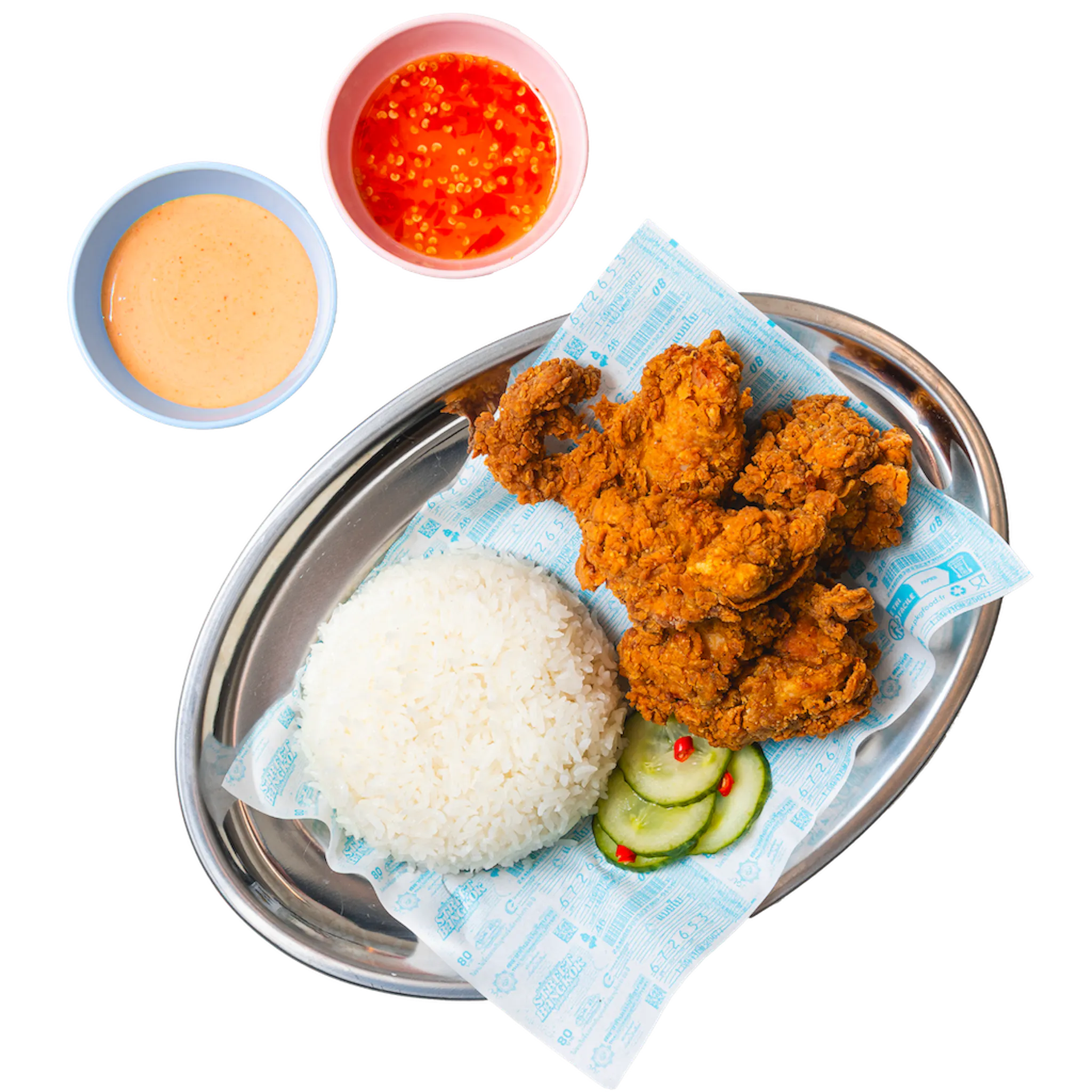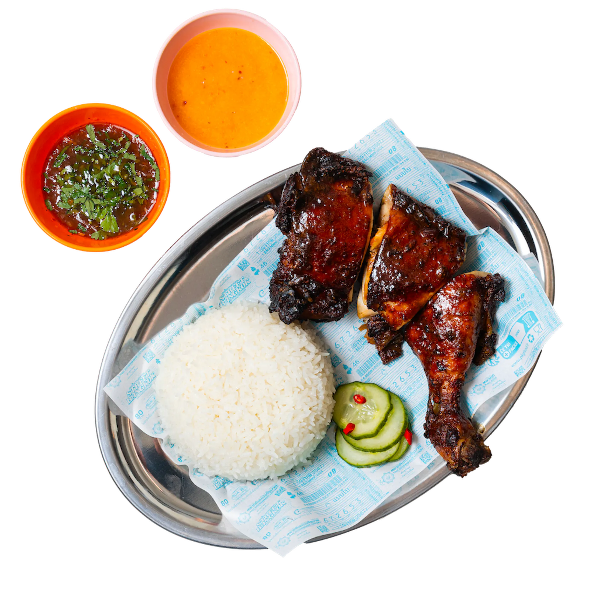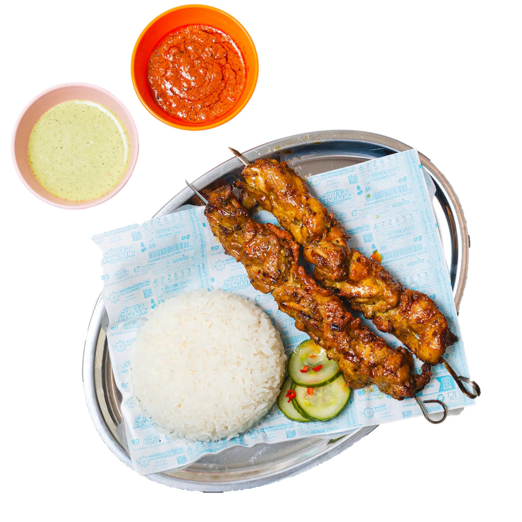 Double portion de Thaï Chickens à choisir entre : Gai Yang, Fried Chicken, Grilled Chicken Satay. Servi avec 2 dips au choix et pickles.
