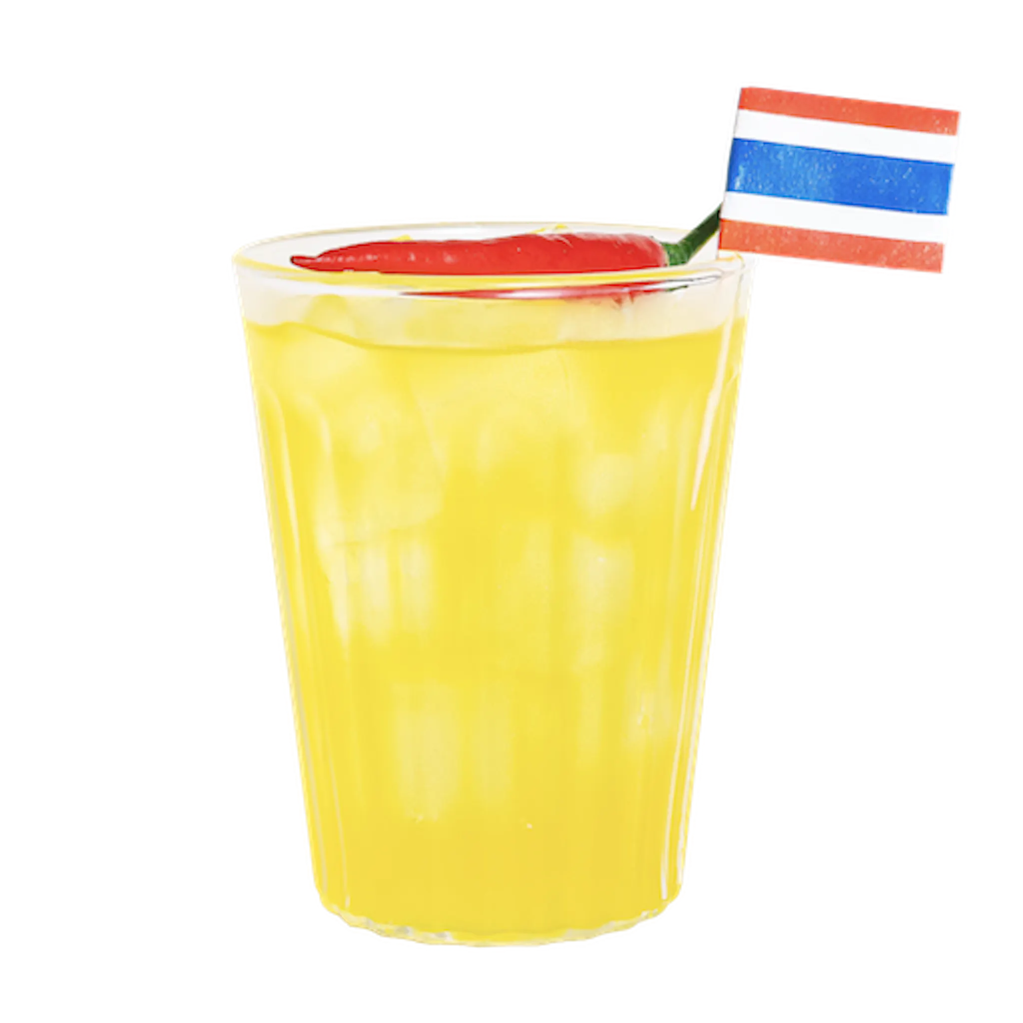 Vodka infusée aux feuilles de kaffir, eau de coco, citron vert, gingembre, piment. Frais et pimenté.