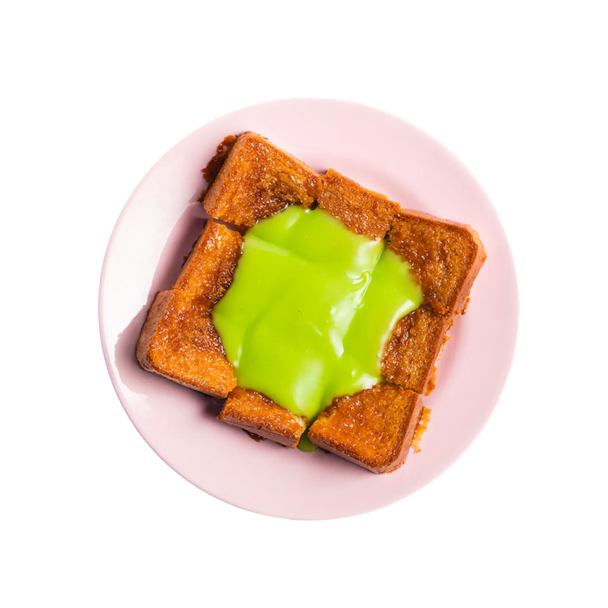 Pain moelleux légèrement caramélisé, crème douce au pandan.