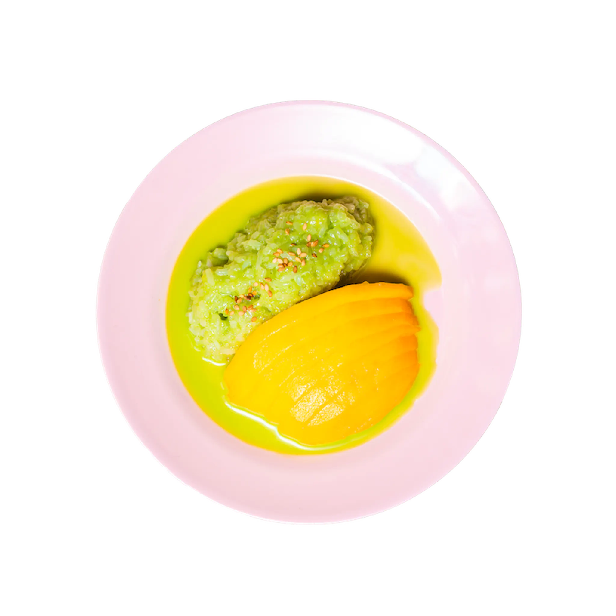 Riz gluant au pandan, lait de coco et mangue fraîche.